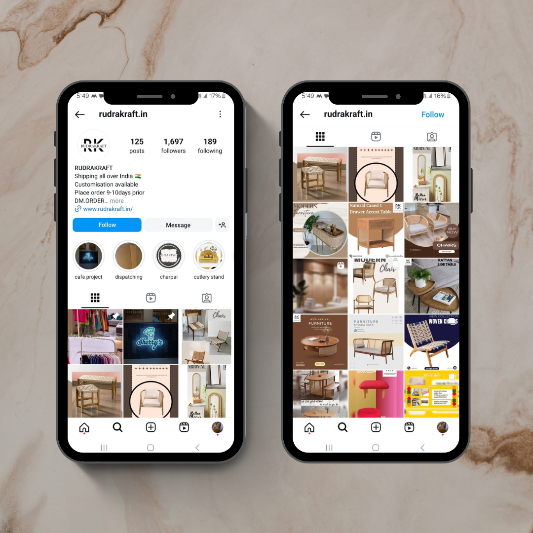 For Rudra Kraft, we managed their Instagram account to enhance their digital presence and showcase their exquisite handcrafted products. Through engaging content, creative storytelling, and strategic social media management, we helped Rudra Kraft connect with a wider audience, boost brand awareness, and drive customer engagement. Our efforts focused on highlighting the artistry, quality, and uniqueness of their handcrafted collections, ensuring a visually appealing and impactful online presence.